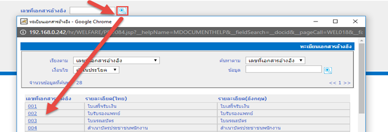 ที่หน้าจอทะเบียนเอกสารอ้างอิงกดปุ่ม  เพื่อทำการค้นหาเอกสารที่ต้องการแก้ไข