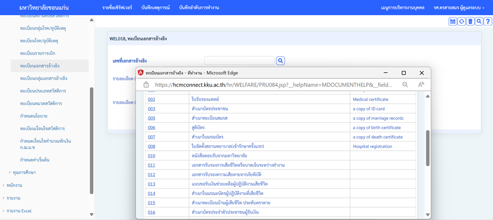 ไม่แนะนำให้ทำการลบเอกสารเนื่องจากถ้ามีการเรียกใช้เอกสารนั้นกับสวัสดิการที่ได้ขอเบิกไปแล้วจะทำให้ข้อมูลหายไปด้วย** |