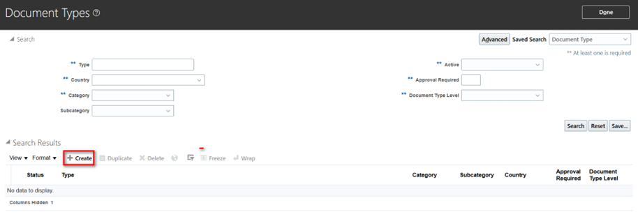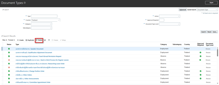 Navigation: My Client Groups → Show More → Document Type ขั้นตอน การกระทำ 1. เข้าสู่ระบบ Oracle โดยใช้ข้อมูลการเข้าสู่ระบบที่ได้รับ 2. คลิกที่ My Client Groups → Show More 3. ภายใต้ Document Type คลิกที่ Document Type 4. คลิกที่ไอคอน "Add" ...