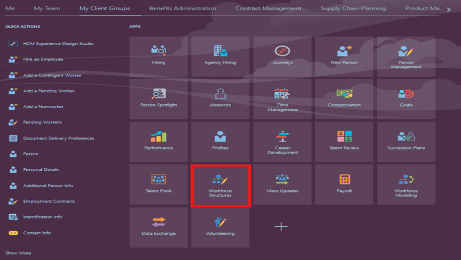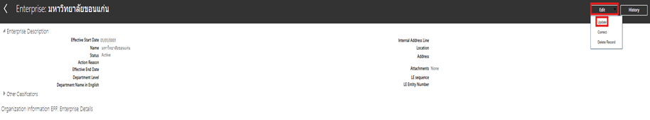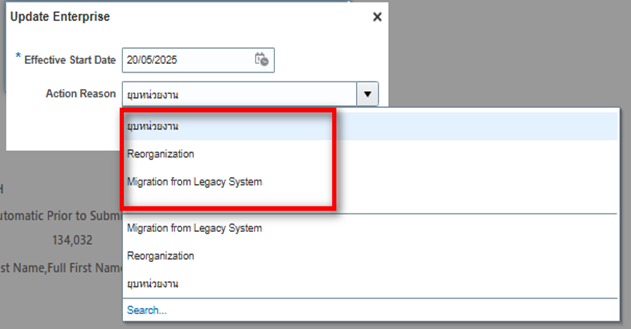 Navigation: My Client Groups → Show More → Manage Enterprise HCM Information ขั้นตอน การกระทำ 1. เข้าสู่ระบบ Oracle โดยใช้ข้อมูลการเข้าสู่ระบบที่ได้รับ 2. คลิกที่ My Client Groups → Workforce Structures 3. ภายใต้ Organizations คลิกที่ Manage ...