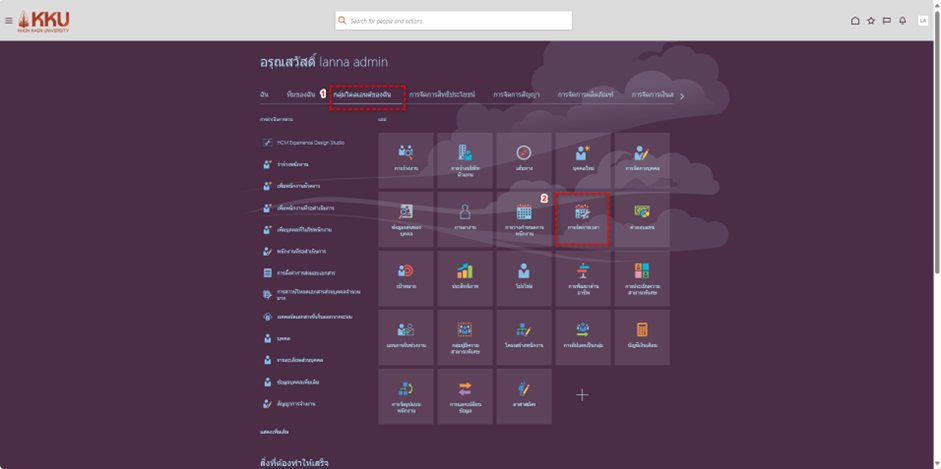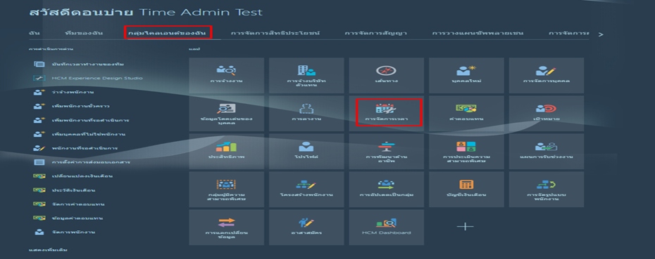| 1. | เข้าสู่ระบบด้วยรหัสผู้ใช้งานด้วยบทบาทแอดมินของมหาวิทยาลัย จากนั้นเลือกแท็บ กลุ่มไคลเอนทต์ของฉัน และทำการเลือกเมนู การจัดการเวลา |