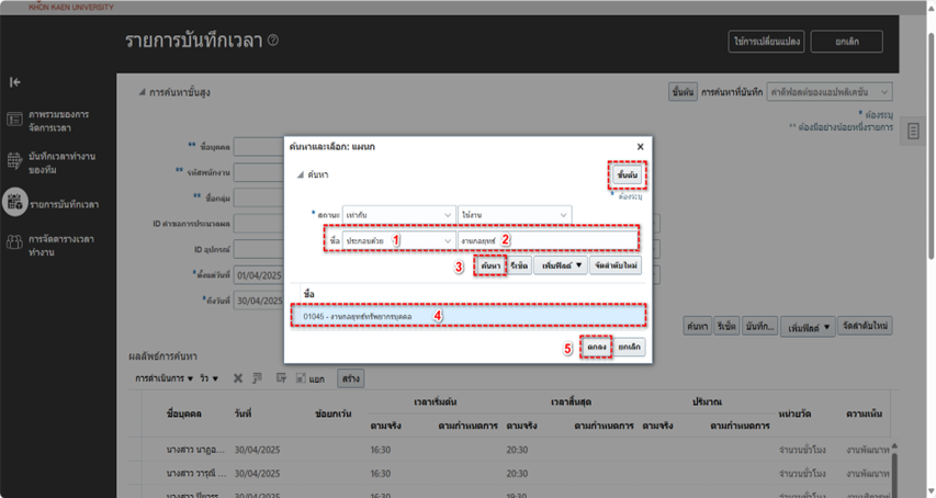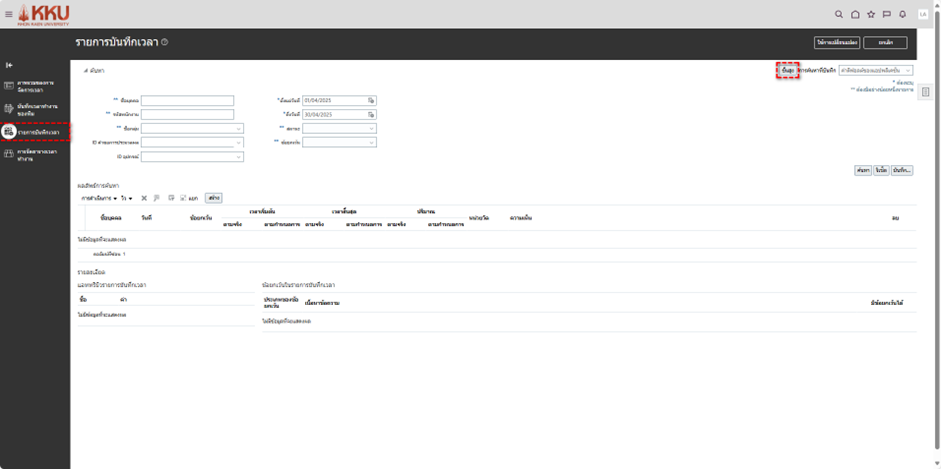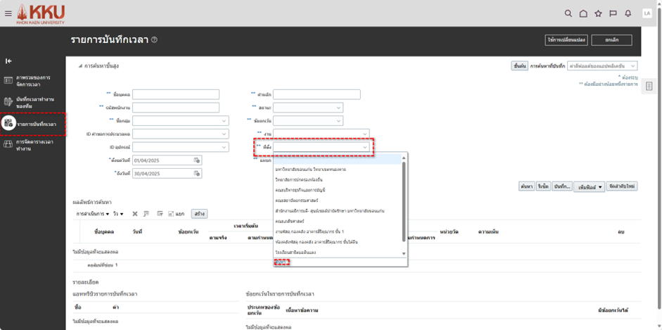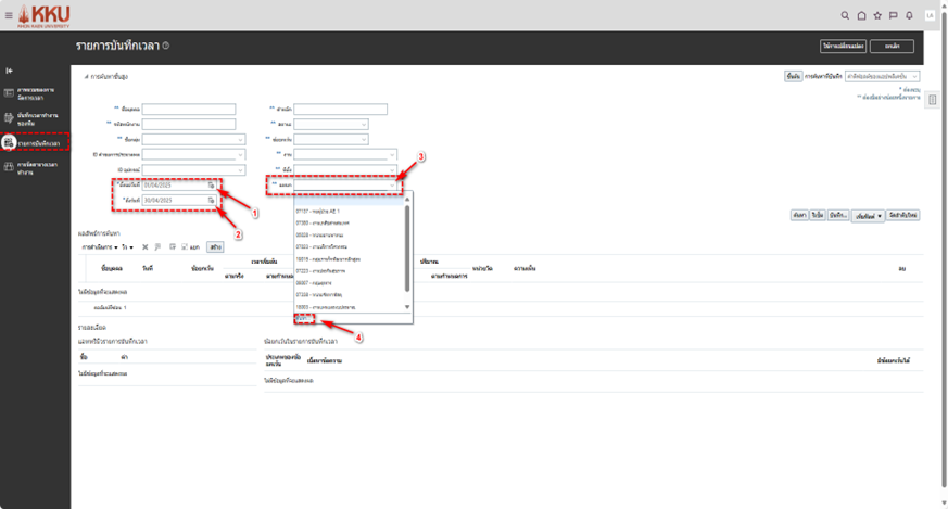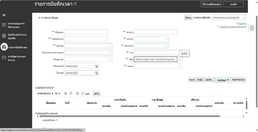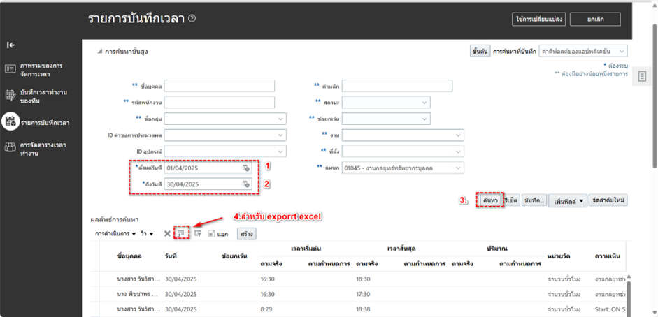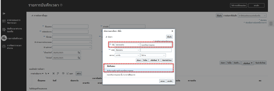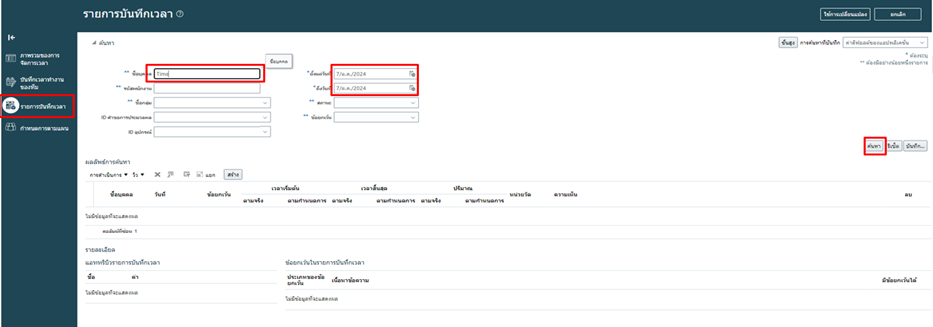 | 3. |  หากต้องการค้นหารายการบันทึกเวลาของบุคลากรจาก