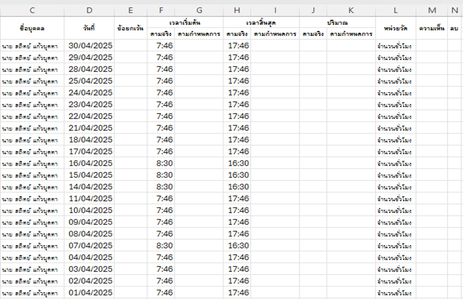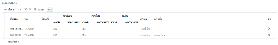 | 3. | ระบบจะแสดงรายการเข้าและออกการลงเวลาของบุคลากรดังกล่าว