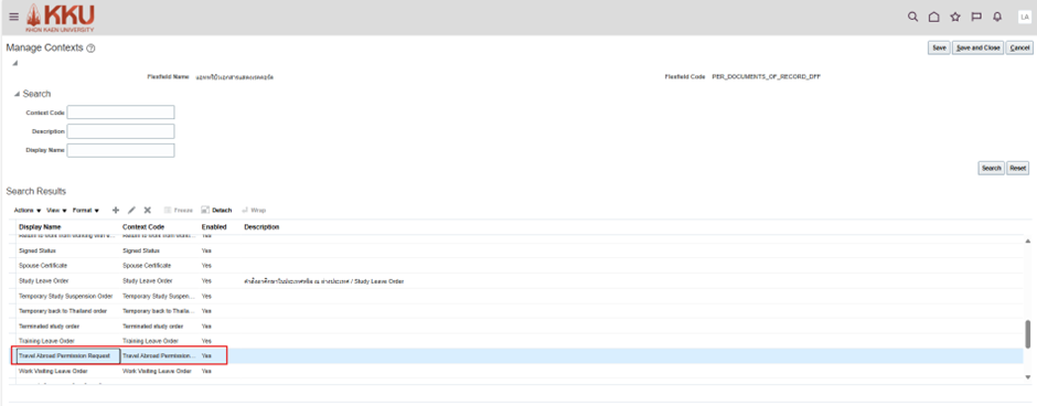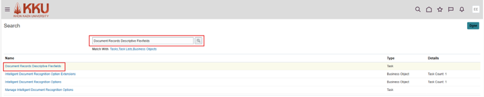 Document Records Descriptive Flexfields จากนั้นระบบจะแสดงชื่อที่ต้องการค้นหา