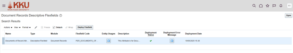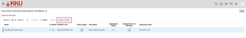 คลิกไปที่ Deploy Flexfield เพื่อนทำการทำการปรับใช้ในระบบ |