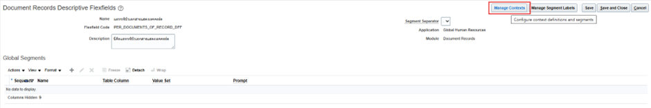Document Records Descriptive Flexfields ผู้ใช้สามารถสร้างและจัดการฟิลด์ที่กำหนดเองสำหรับบันทึกเอกสารได้ |