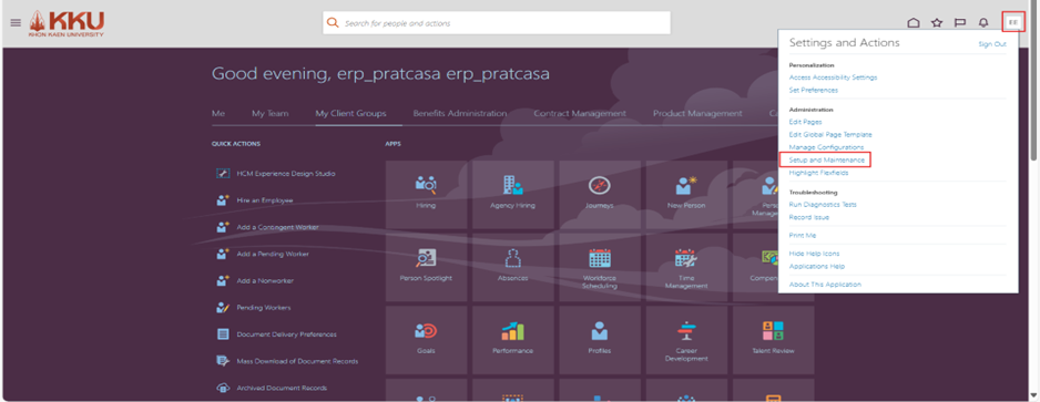 เข้าสู่ระบบด้วยรหัสผู้ใช้งานด้วยบทบาทผู้ดูแลของระบบ Oracle Fusion จากนั้นคลิกไปที่โปรไฟล์รูปภาพ