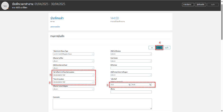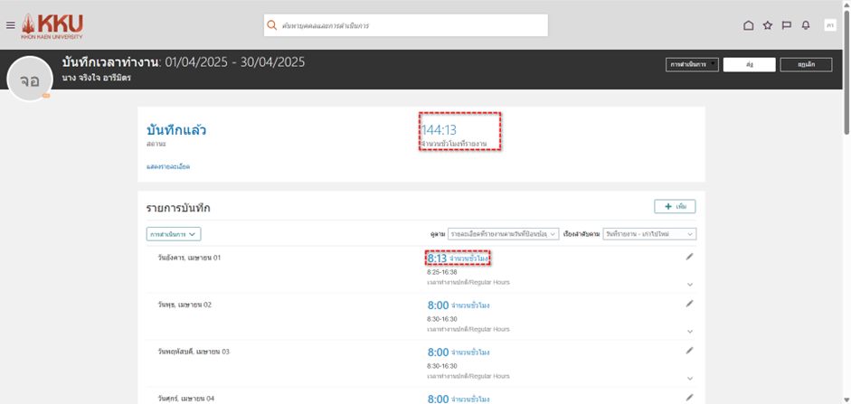 หลังจากมีการแก้ไขรายการเวลา จำนวนชั่วโมงที่รายงานจะถูกเปลี่ยนแปลงตามการแก้ไข