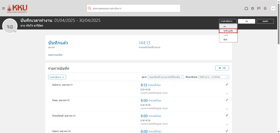 เมื่อผู้ดูแลระบบดำเนินการตรวจสอบรายการเวลาที่ลงทั้งหมดแล้วถูกต้อง