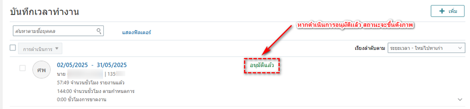 ระบบจะแสดงว่า อนุมัติแล้ว |