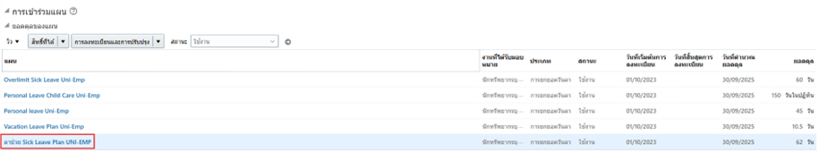 และหากต้องการตรวจสอบรายละเอียดแผนเพิ่มเติม คลิกได้ที่แผนการลาที่ต้องการ |