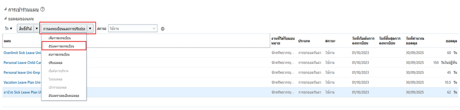 เพื่ออัพเดทแผนการลาที่ต้องการที่ต้องการอัปเดทการลงทะเบียนให้กับบุคลากร |
