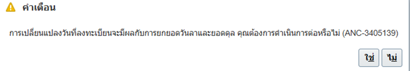 หากต้องการทำการเปลี่ยนแปลงวันที่มีผลการลงทะเบียน |