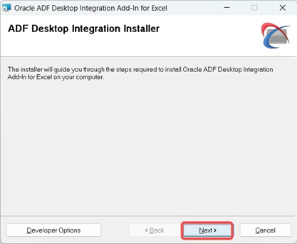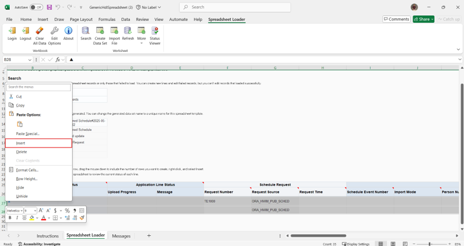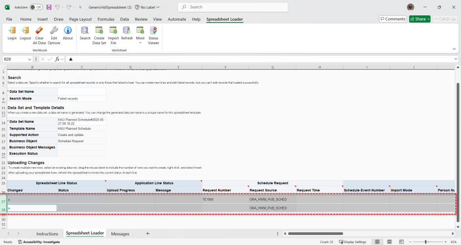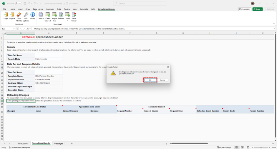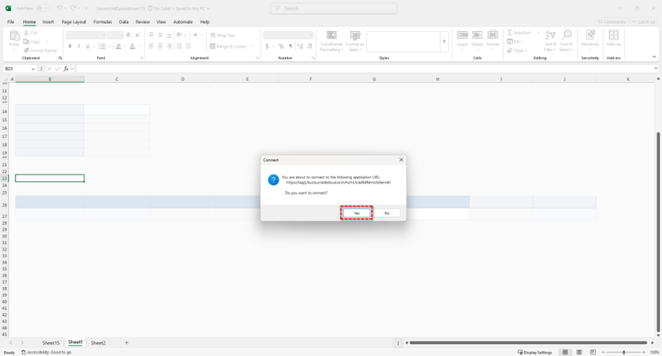 เมื่อดาวน์โหลดเทมเพลตแล้ว กดเปิดไฟล์ที่ดาวน์โหลดในคอมพิวเตอร์ ระบบจะแสดงแจ้งเตือนในการเชื่อมต่อ Excel กับ Oracle ผ่าน Desktop Integrator ที่ดาวน์โหลดไว้ก่อนหน้า