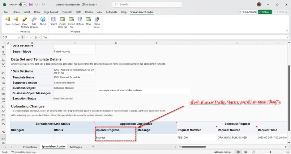 หมายเหตุ เมื่อดำเนินการอัปโหลดสำเร็จและขึ้นสถานะ