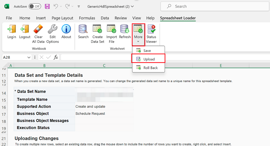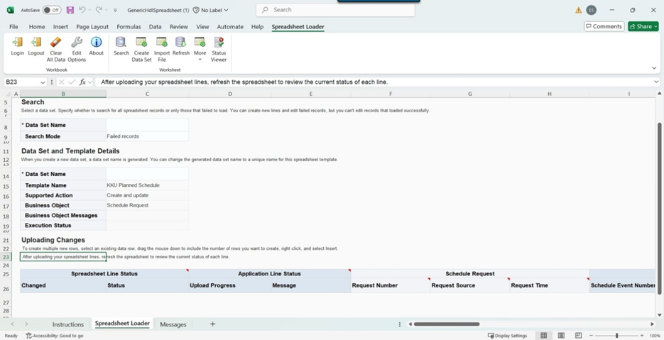 เพื่อตรวจสอบว่าการลง Desktop Integrator ถูกต้อง สามารถตรวจสอบได้ที่แท็บฟังก์ชั่นใน Excel โดยต้องมีแท็บที่ระบุว่า ‘Spreadsheet Loader’ |