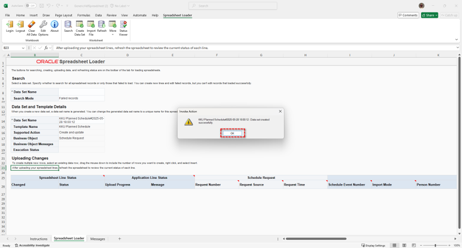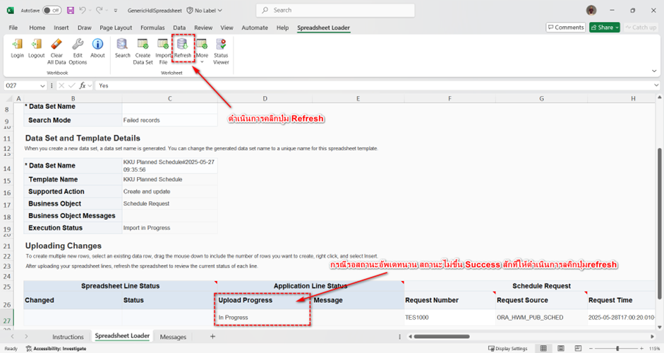 Refresh เพื่อดำเนินการตรวจสอบสถานะการอัปโหลดตารางกะการทำงาน |