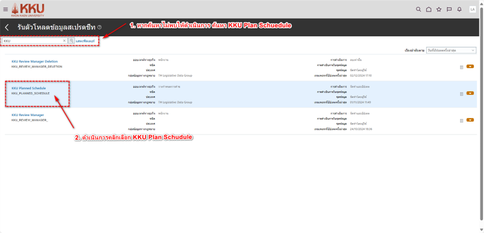 เลือกเทมเพลตที่ต้องการดาวน์โหลด 1.หากค้นหาไม่พบให้ดำเนินการ ค้นหา KKU Plan Schuedule 2.คลิก KKU Planned Schedule