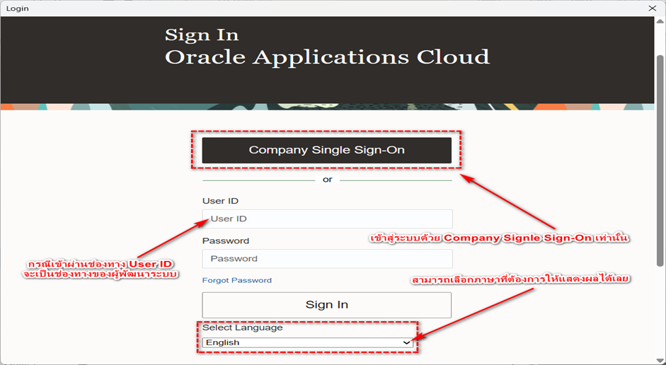 · การเลือกภาษา(Select Language) ระบบจะแสดงผลตามที่ได้ดำเนินการเลือกไว้ |