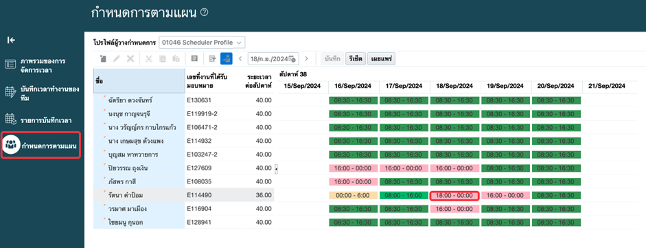 ซึ่งผู้ที่จะเห็นตารางกะการทำงานนี้ได้จะต้องได้รับสิทธิ์การจัดกะในเบื้องต้น |