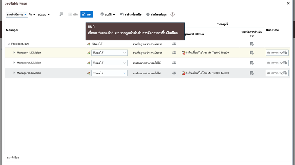 “แยกแล้ว” จะปรากฏหน้าต่างในการจัดการการขึ้นเงินเดือน |