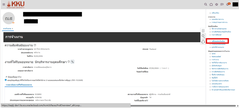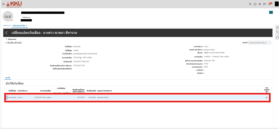 หลักจากนั้นกดแถบเมนู > เปลี่ยนแปลงเงินเดือน |