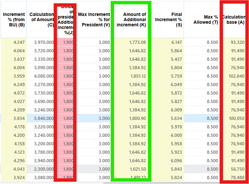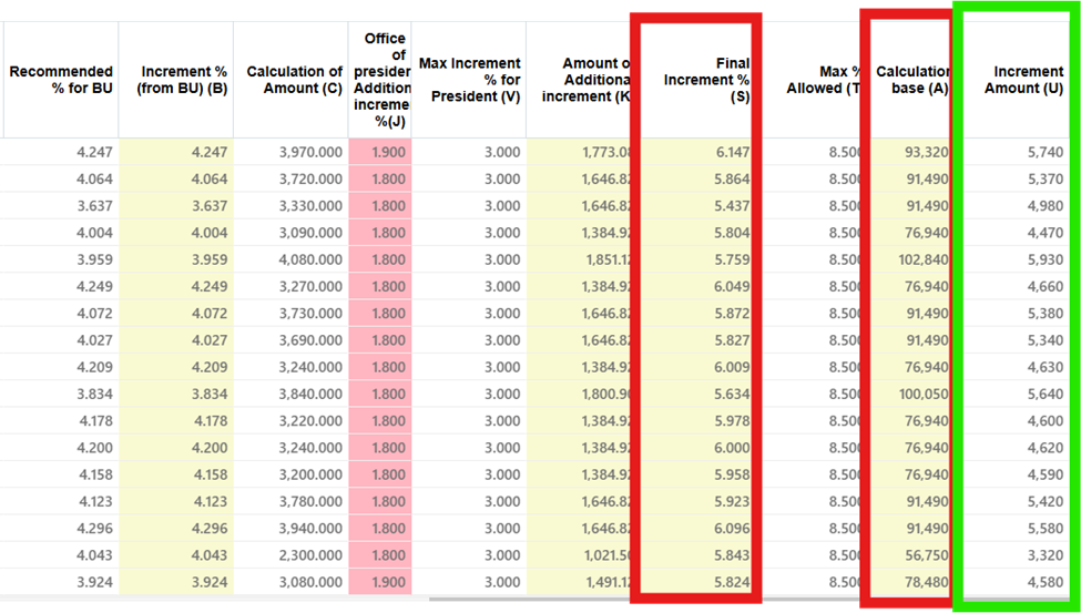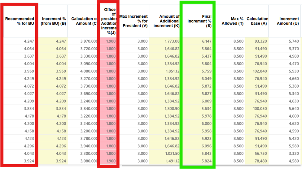 - แผนการขึ้นเงินเดือน (2 แผน) - University Employee – GF (แผนการขึ้นเงินเดือนพนักงานมหาวิทยาลัยเงินงบประมาณ) - University Employee – IF (แผนการขึ้นเงินเดือนพนักงานมหาวิทยาลัยเงินรายได้) - รอบการตั้งงบประมาณพนักงานมหาวิทยาลัย - เดือนตุลาคม - พนักงานมหาวิทยาลัย (เกษียณอายุ) - วันที่มีผลของเงินเดือนคือ 30 กันยายน - พนักงานมหาวิทยาลัย (ไม่เกษียณอายุ) - วันที่มีผลของเงินเดือนคือ 01 ตุลาคม - กลุ่มงบประมาณ - Merit Budget Pool > ระบุงบประมาณที่ 4% - President Pool > เงื่อนไขการได้จำนวนเงินบน President Pool ต้องคำนวณภายนอกซึ่งมีเงื่อนไข คือ 0.5% * เงินเดือนของพนักงานในทุกแผนการขึ้นเงินเดือนที่เข้าเงื่อนไขดังต่อไปนี้ 1. Honor and Award 2. Committee Type 3. Management Level