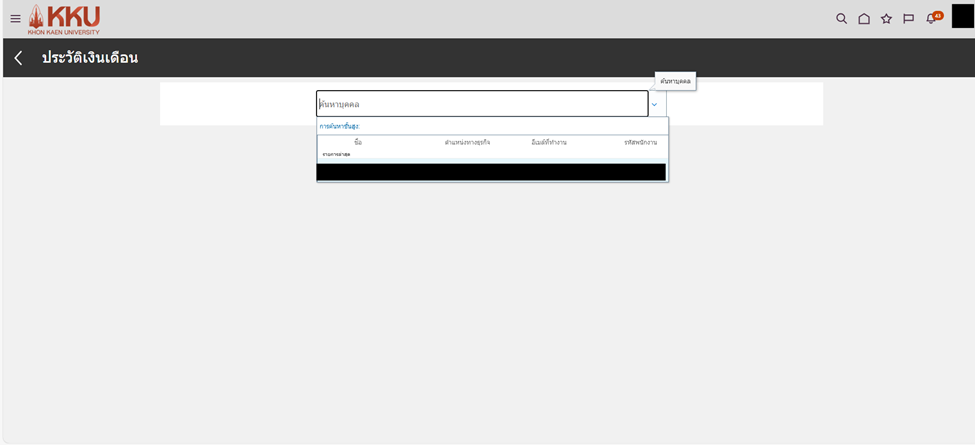 ค้นหาพนักงานที่ต้องการตรวจสอบประวัติเงินเดือน |