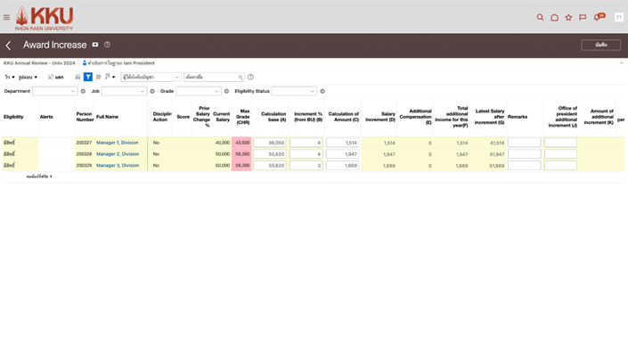 รายละเอียดของกระบวนการเลื่อนเงินเดือนของพนักงานมหาวิทยาลัย (Award Increase) มีดังนี้