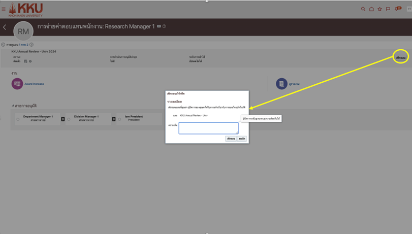 Review Manager (Academic/Research/Support) > Department Manager (เฉพาะสำนักอธิการบดี) > Division Manager > President