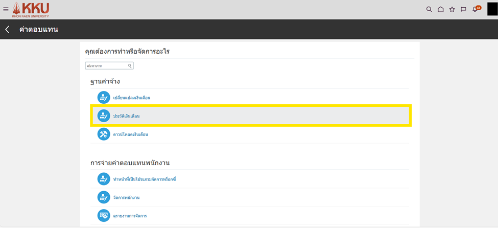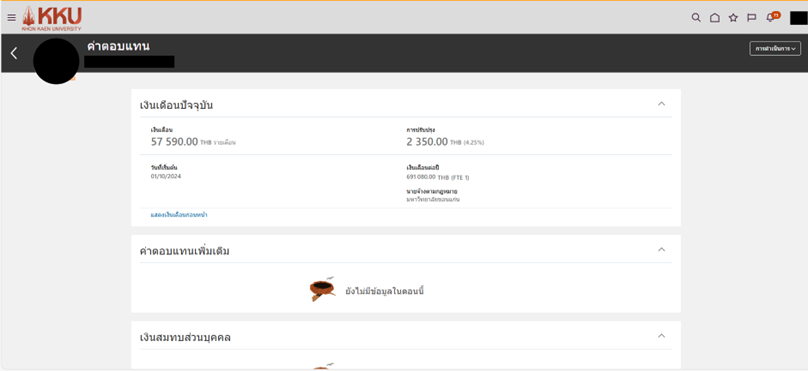 ระบบแสดงเงินเดือนปัจจุบันและค่าตอบแทนที่พนักงานได้รับ |
