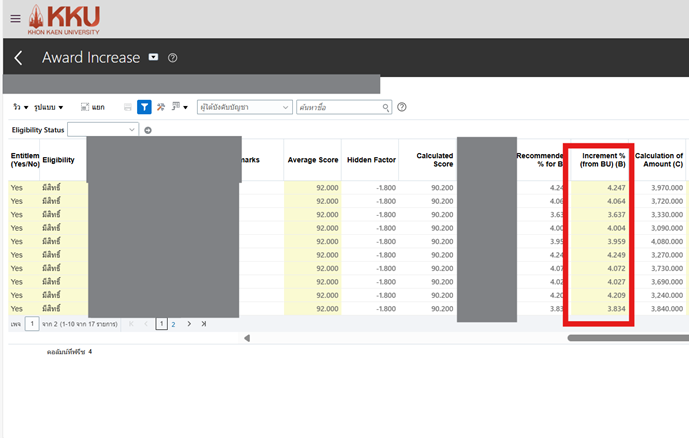 หลังจากนั้นทำการเข้าสู่เมนู “Award Increase” เพื่อตรวจสอบสถานะการอนุมัติ |